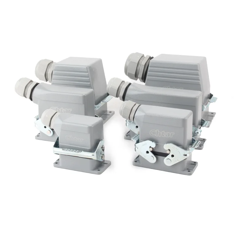 Đầu nối hạng nặng 24 chân AG bền bỉ do CHTAR thiết kế và sản xuất phù hợp với các đầu nối hạng nặng 24 chân HE, HD, HEE, HDD và các đầu nối hạng nặng khác. Đầu nối được làm bằng hợp kim nhôm và phủ bột màu xám RAL7037. Dòng điện hoạt động của nó là 16A, điện áp hoạt động là 500VAC, phạm vi nhiệt độ hoạt động là -40oC đến +125oC (-40℉ đến +257℉), chu kỳ cắm và rút phích cắm là 500 lần và cấp bảo vệ là IP65.