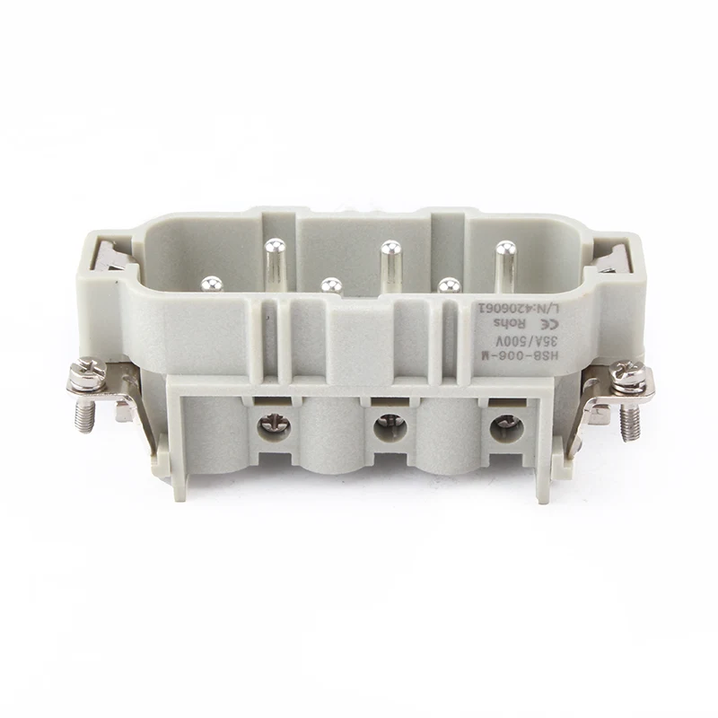 HSB-006-M HSB Đầu nối hạng nặng đang hoạt động dưới dòng điện 35A. Đầu nối hạng nặng chèn 6 chân 35A có 6 chân hoặc 12 chân đôi để tiếp xúc với dây dẫn. Nó cung cấp các điều kiện làm việc khác nhau và được sử dụng phổ biến trong các ngành công nghiệp tự động và các loại kết nối dây của máy.