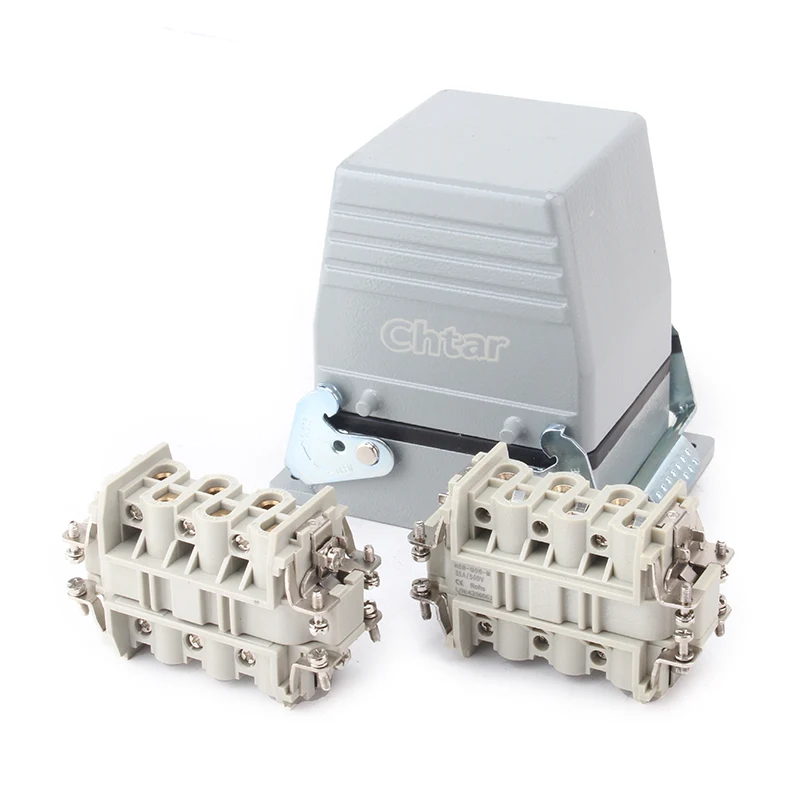 Đầu nối hạng nặng chèn 35A 6 chân chất lượng cao CHTAR này phù hợp với vỏ đầu nối hạng nặng vỏ 35A H16B-TG hoặc H16B-TS. Nó được làm bằng vật liệu PC có độ bền cao và được lắp ráp với 6 chân trong vỏ nhôm H16B. Nó cũng có thể có 12 chân, nhiều gấp đôi so với H32B-TG hoặc H32B-TS.