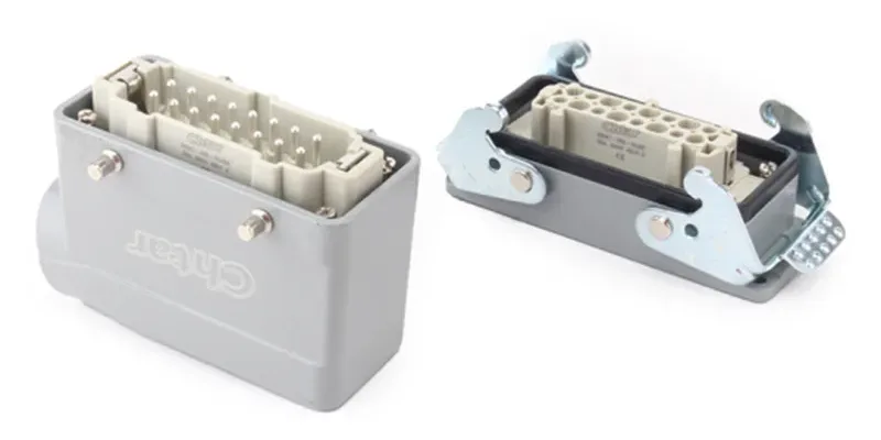 Đầu nối hạng nặng bao gồm hai thành phần: vỏ bên ngoài và bộ phận chèn bên trong. Vỏ có tác dụng bảo vệ các kết nối dây chèn, trong khi lõi bao gồm vỏ bằng polycarbonate được gia cố và các chân cắm bằng đồng mạ bạc, tạo điều kiện thuận lợi cho các kết nối điện. Các chân cắm bằng đồng mạ bạc đảm bảo độ dẫn điện và khả năng chống ăn mòn tuyệt vời, duy trì khả năng truyền tín hiệu đáng tin cậy ngay cả trong điều kiện môi trường khắc nghiệt. Vỏ bằng polycarbonate được gia cố mang lại độ bền cơ học cao và độ ổn định nhiệt, cho phép đầu nối chịu được độ rung, va đập và nhiệt độ khắc nghiệt. Những tính năng này làm cho đầu nối chịu tải nặng trở nên lý tưởng cho các ứng dụng tự động hóa công nghiệp, giao thông vận tải và ngoài trời, nơi độ bền và hiệu suất là rất quan trọng.