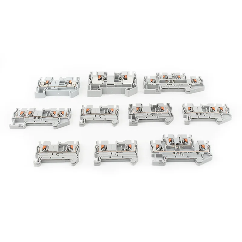 PT 10 Feed Through Din Rail Terminal Block kết hợp công nghệ kết nối đẩy vào giúp đơn giản hóa việc nối dây—không cần dụng cụ. Người dùng có thể chèn trực tiếp dây đã chuẩn bị sẵn và cơ cấu kẹp lò xo tích hợp sẽ khóa dây một cách an toàn. So với các kết nối kiểu vít, cải tiến này giúp tăng hiệu suất đáng kể, cắt giảm thời gian đi dây tới 80% và giảm khoảng một nửa lực chèn. Kết quả là sự hội nhập nhanh hơn và nỗ lực lao động thấp hơn.