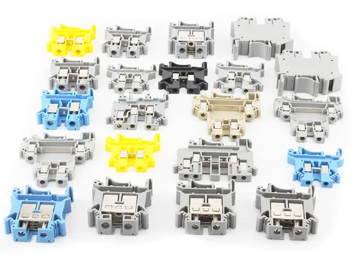 Nhà máy của chúng tôi cung cấp tùy chỉnh màu vỏ OEM cho các vị trí và chức năng khác nhau. Các khối thiết bị đầu cuối đường ray vít din mới nhất có sẵn các màu tiêu chuẩn như xám, vàng, đỏ, đen, xanh lá cây, nâu và cam để phù hợp với các nhu cầu khác nhau của thị trường.